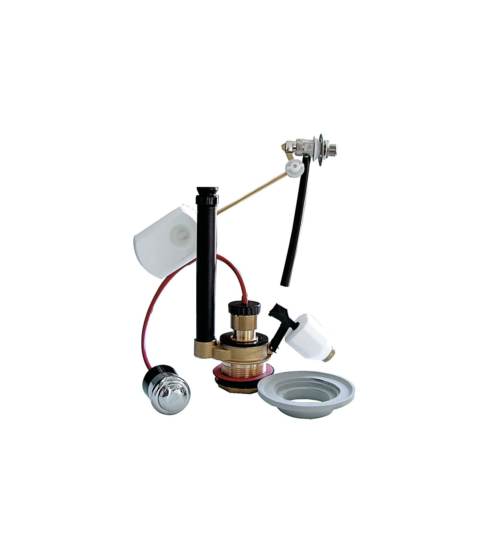 MECCANISMO DI SCARICO CON PULSANTE, KIT MONOBLOCCO E GALLEGGIANTE ASTA LATERALE 3/8 - Ottone