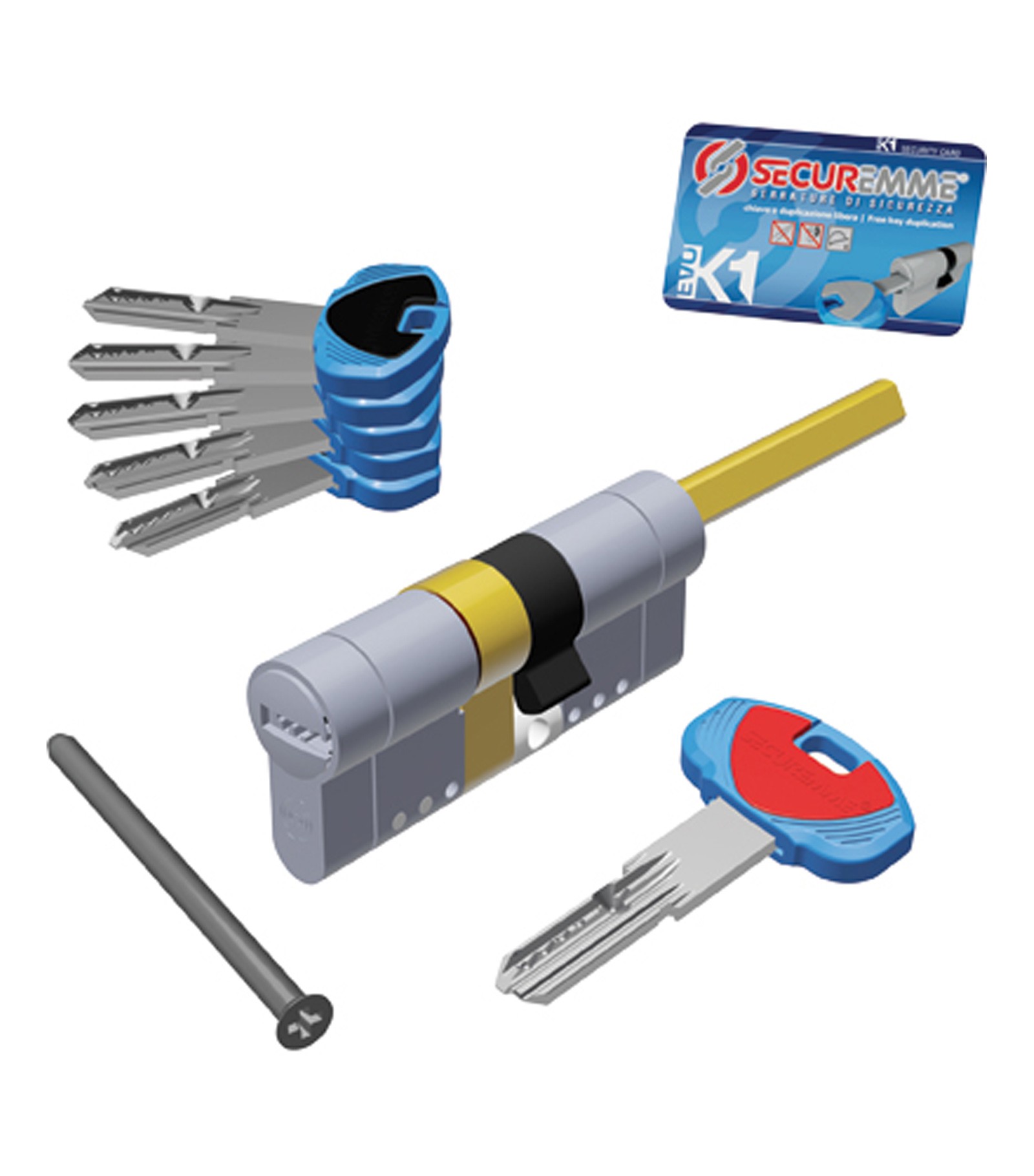 Securemme Cilindro Sagomato Evo K1 3100-Q Pomolo Securemme Ott.Nich.Satin Chiavi 5 Mm 60 30+30