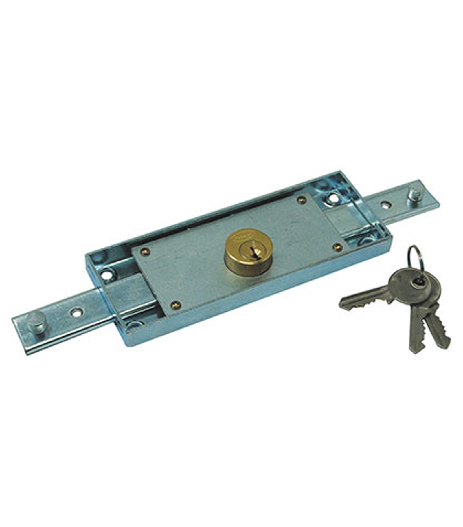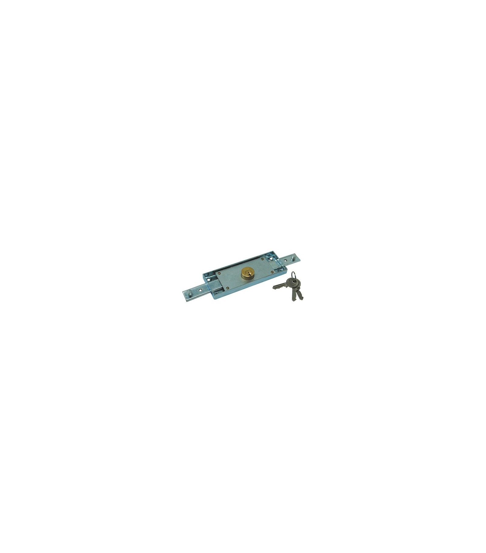 Con cilindro tondo fisso da Mm. 25 di diametro. Per installazione centrale con catenacci dritti a 1 mandata. Corsa catenacci Mm. 25. Scatola in acciaio zincato da Mm. 155x56, spessore Mm. 15. In dotazione: 3 chiavi piatte.