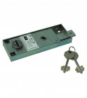 Verticale con chiusura singola lato superiore a 2 mandate. Corsa catenaccio Mm. 22. Quadro maniglia Mm. 8. Interasse Mm. 66. Scatola in acciaio zincato da Mm. 155x56, spessore Mm. 18,5. In dotazione: 2 chiavi.
