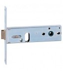 Con cilindro ovale. Scrocco reversibile con catenaccio incorporato. Chiusura da Mm. 9. Quadro maniglia Mm. 8. Frontale in acciaio zincato con bordo quadro da Mm. 16x160. Altezza scatola Mm. 44. In dotazione: vite di fissaggio cilindro e 3 chiavi piatte.