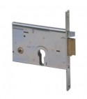 Per cilindro sagomato. Scrocco autobloccante elettrificato 12V. Quadro maniglia Mm. 8. Frontale in acciaio zincato con bordo quadro da Mm. 16x160. Altezza scatola Mm. 82. In dotazione: viti di fissaggio per cilindro.