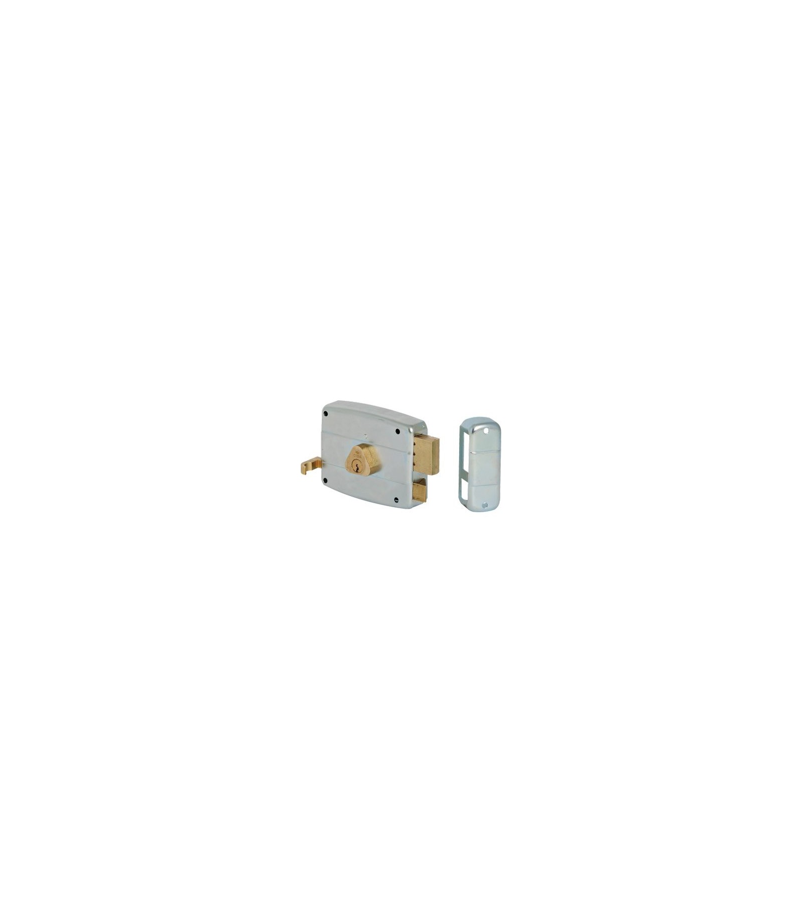Con cilindro interno ed esterno fissi. Scrocco. Chiusura con catenaccio a 2 mandate. Tirante. In acciaio zincato. In dotazione: 1 bocchetta, 3 chiavi piatte e viti di fissaggio.