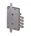 A doppia mappa. Scrocco reversibile, azionabile da chiave o maniglia. Chiusura triplice con catenaccio a 4 pistoni e 4 mandate, corsa Mm. 30, e predisposizione per fissaggio aste, corsa Mm. 20. Quadro maniglia Mm. 8, interasse Mm. 85. Scatola Mm. 125x203. In acciaio zincato. In dotazione: 3 chiavi, mostrina interna ed esterna.