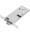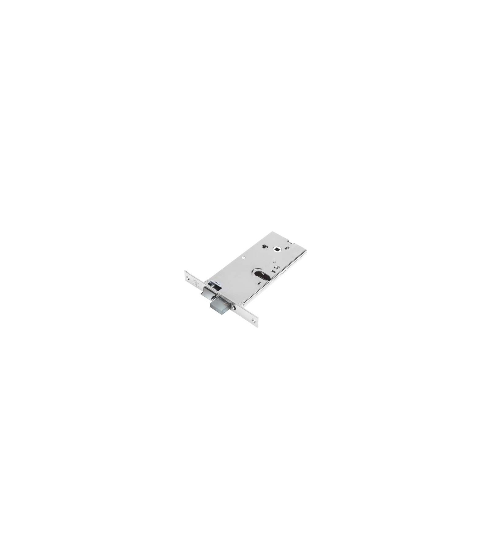 Per cilindro ovale. Scrocco reversibile. Chiusura con catenaccio a 2 mandate. Quadro maniglia Mm. 8. Frontale in acciaio inox con bordo quadro Mm. 16x155. Altezza scatola Mm. 78. In dotazione: viti di fissaggio per cilindro.