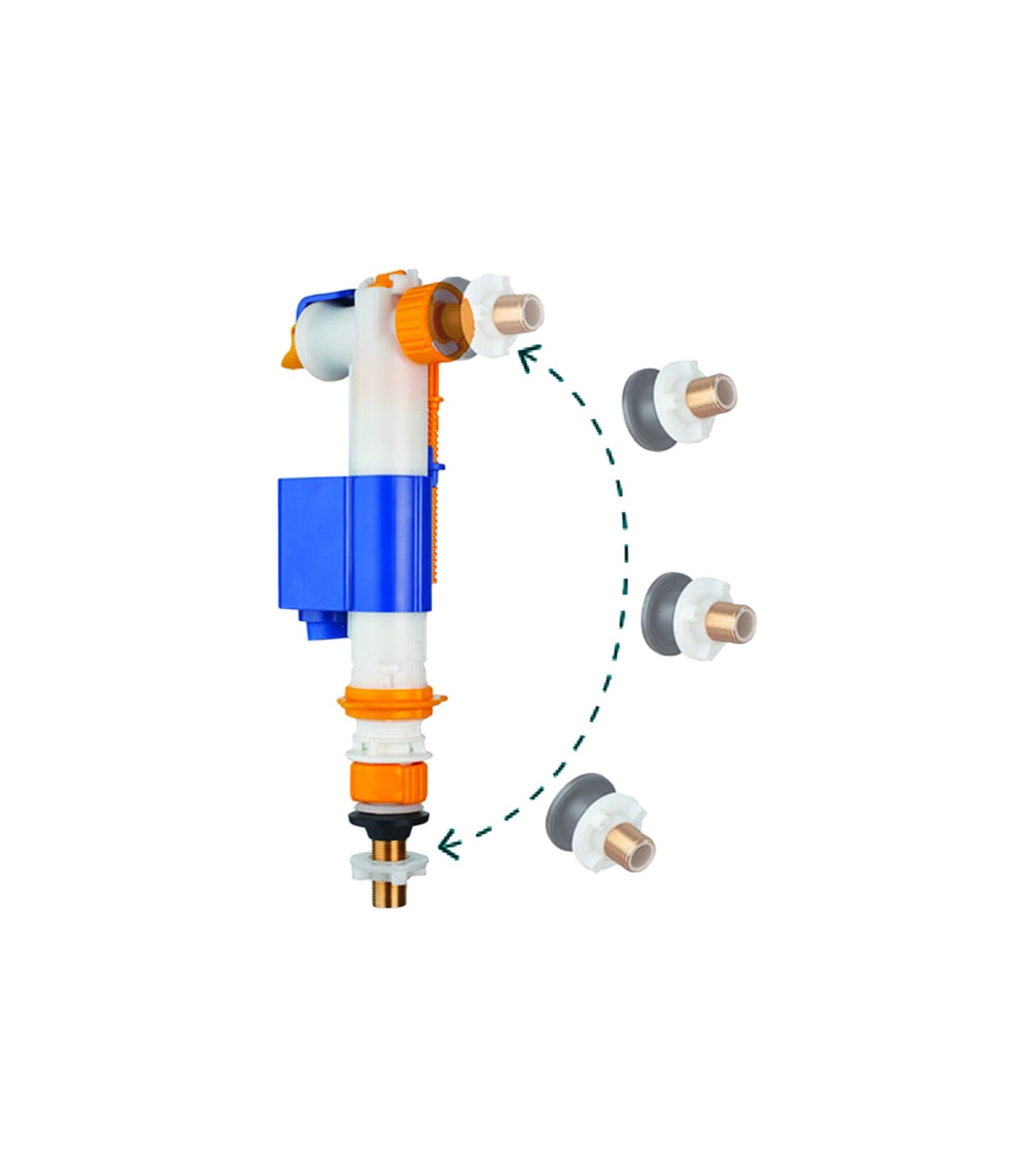 Versione Universale (laterale/inferiore). Apertura ritardata, permette di risparmiare 0,5 Lt. d'acqua ad ogni scarico. Dimensione ridotte. Regolazione telescopica (versione inferiore). Silenzioso. Filtro antimpurità. Sistema di chiusura contro pressione. Pressione dinamica: 0,1-10 bar. Pressione statica: 16 bar. GARANZIA 10 ANNI