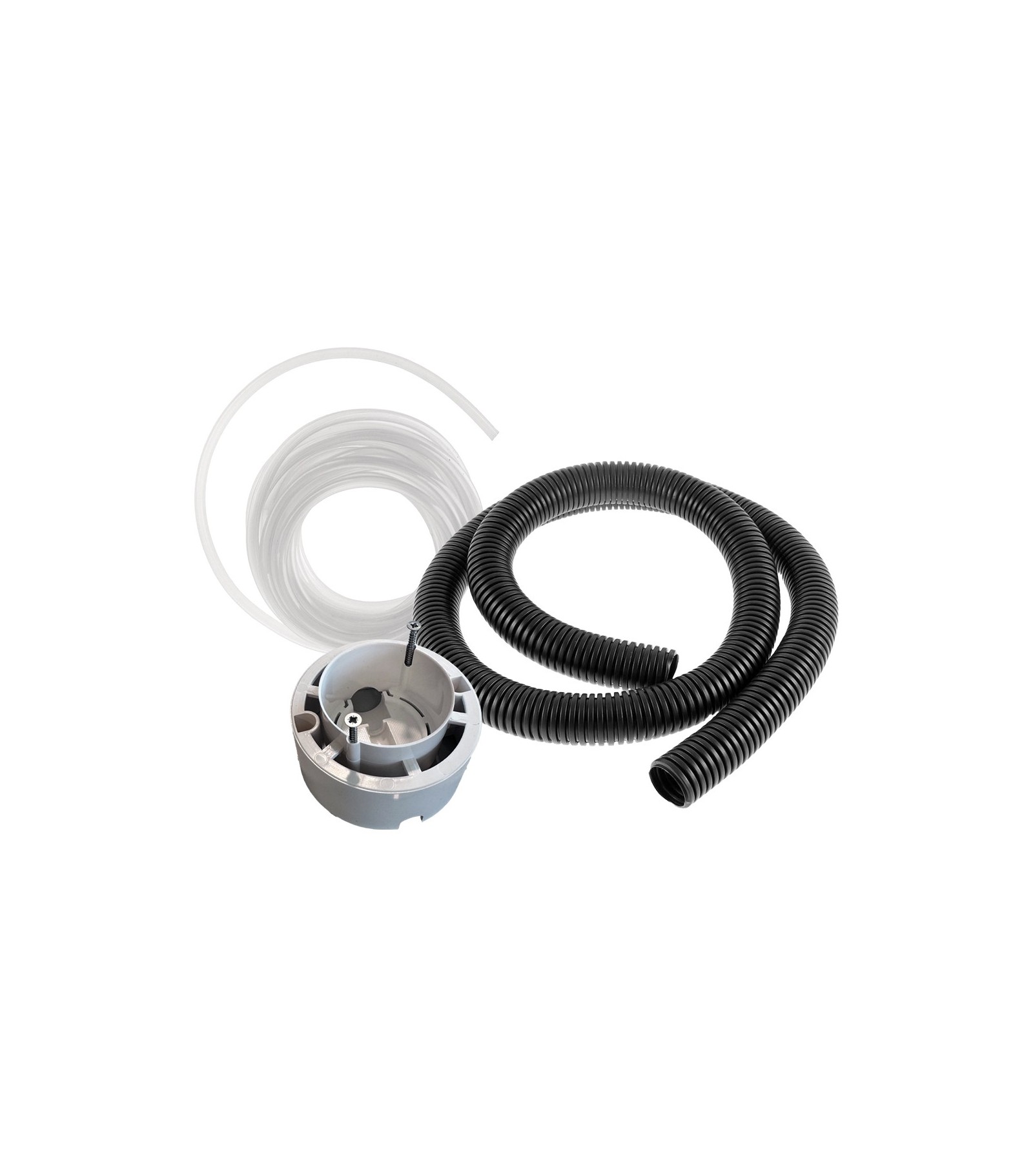 Consente l'installazione murata del pulsante di scarico del sistema ECOSTOP Catis. Il Kit contiene: - Tubo corrugato 130 cm, - Tubicino flessibile in PVC trasparente da 150 cm, - Scatola incasso per pulsante catis D.7,8 cm.