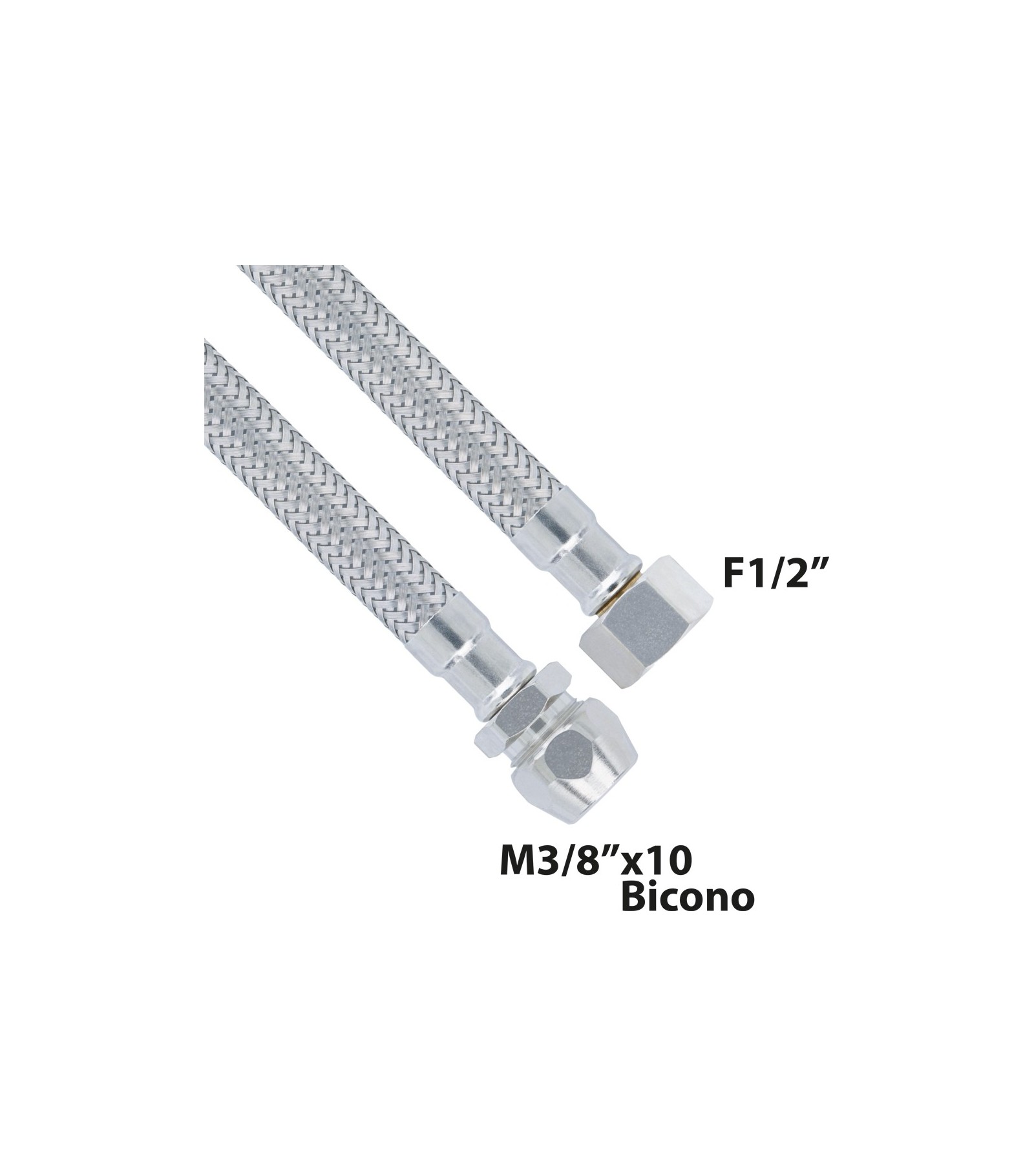 MADE IN ITALYFLESSIBILE IN ACCIAIO INOX F1/2 x M3/8x10 BICONO 30 cm - DN10