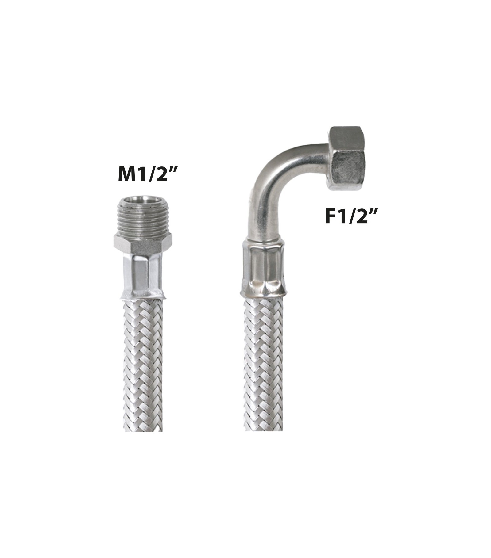 FLESSIBILE IN ACCIAIO INOX M1/2 x CURVA F1/2 40 cm - DN13