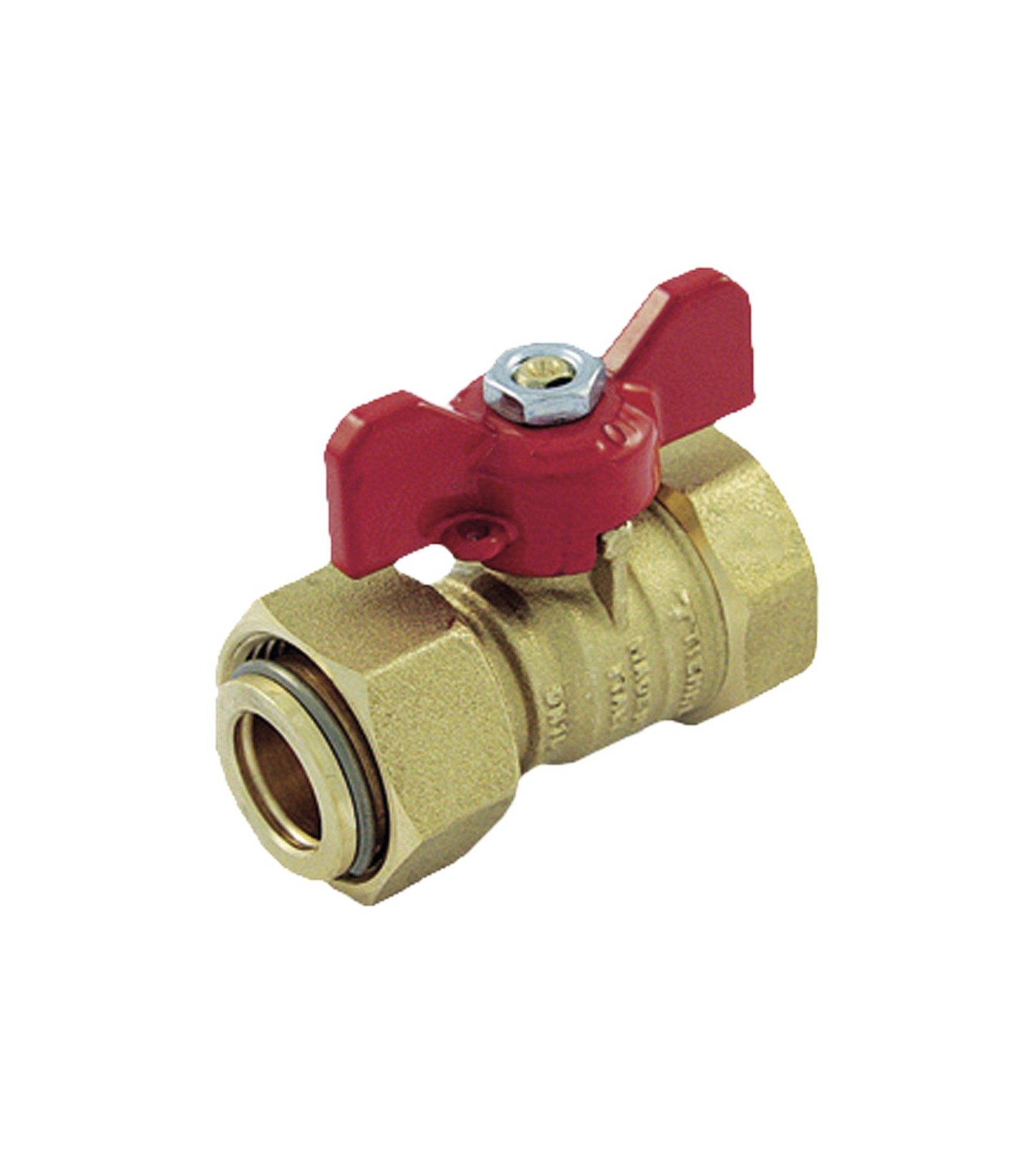 Valvole a sfera per contatori estremità femmina ISO228 e dado folle con leva farfalla rossa