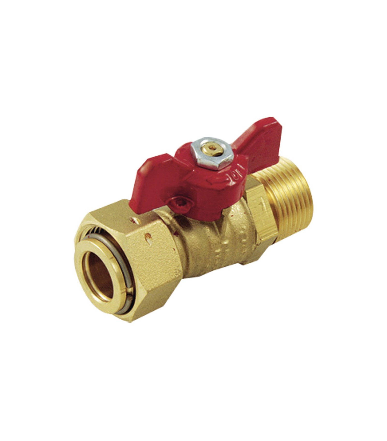 VALVOLA A SFERA DIRITTA MASCHIO CON GIRELLO 1/2 M ISO7 x 3/4 F