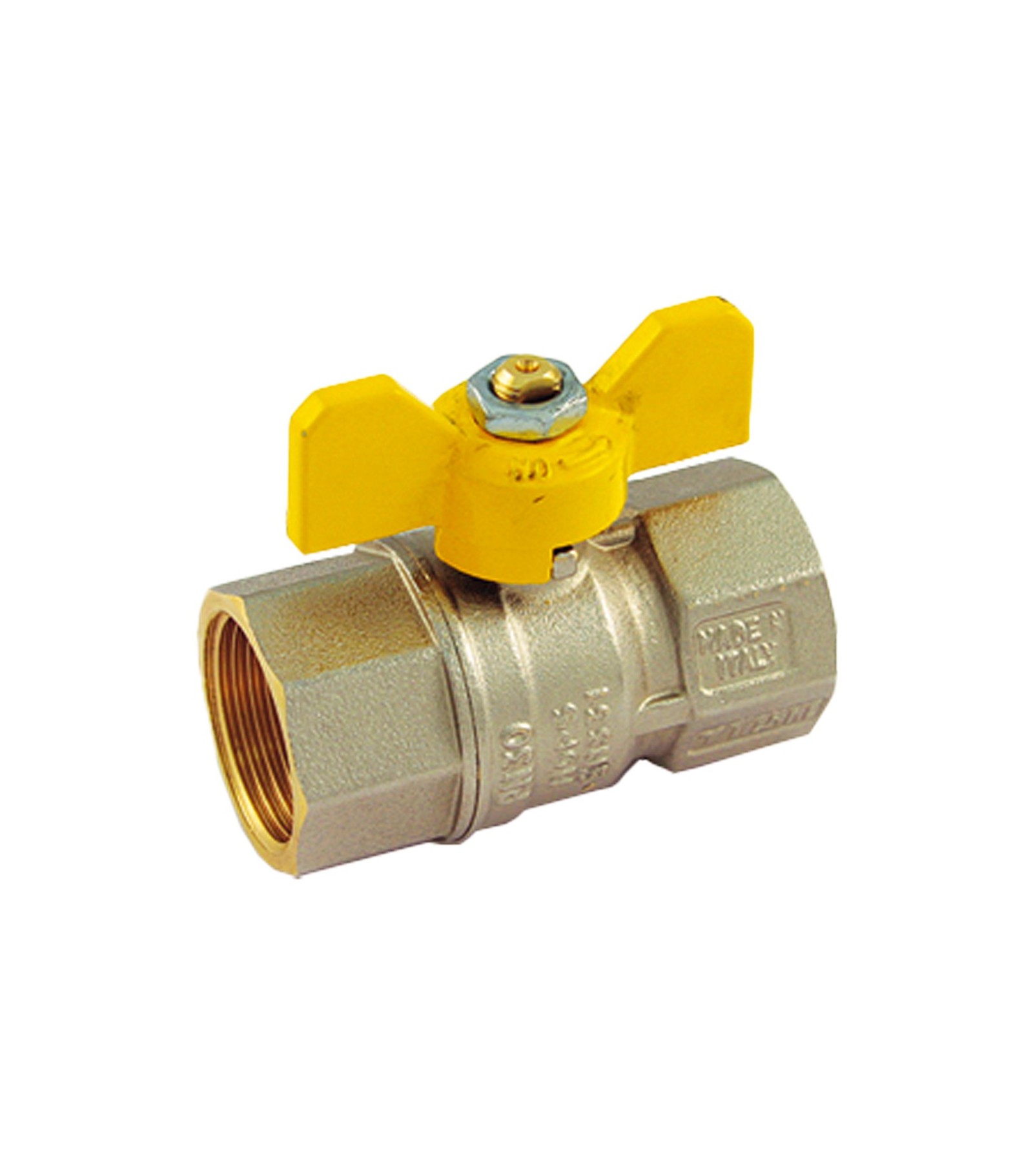 VALVOLA A SFERA GAS F/F CON FARFALLA GIALLA IN ALLUMINIO TIEMME 1 DN23,5 - PN30