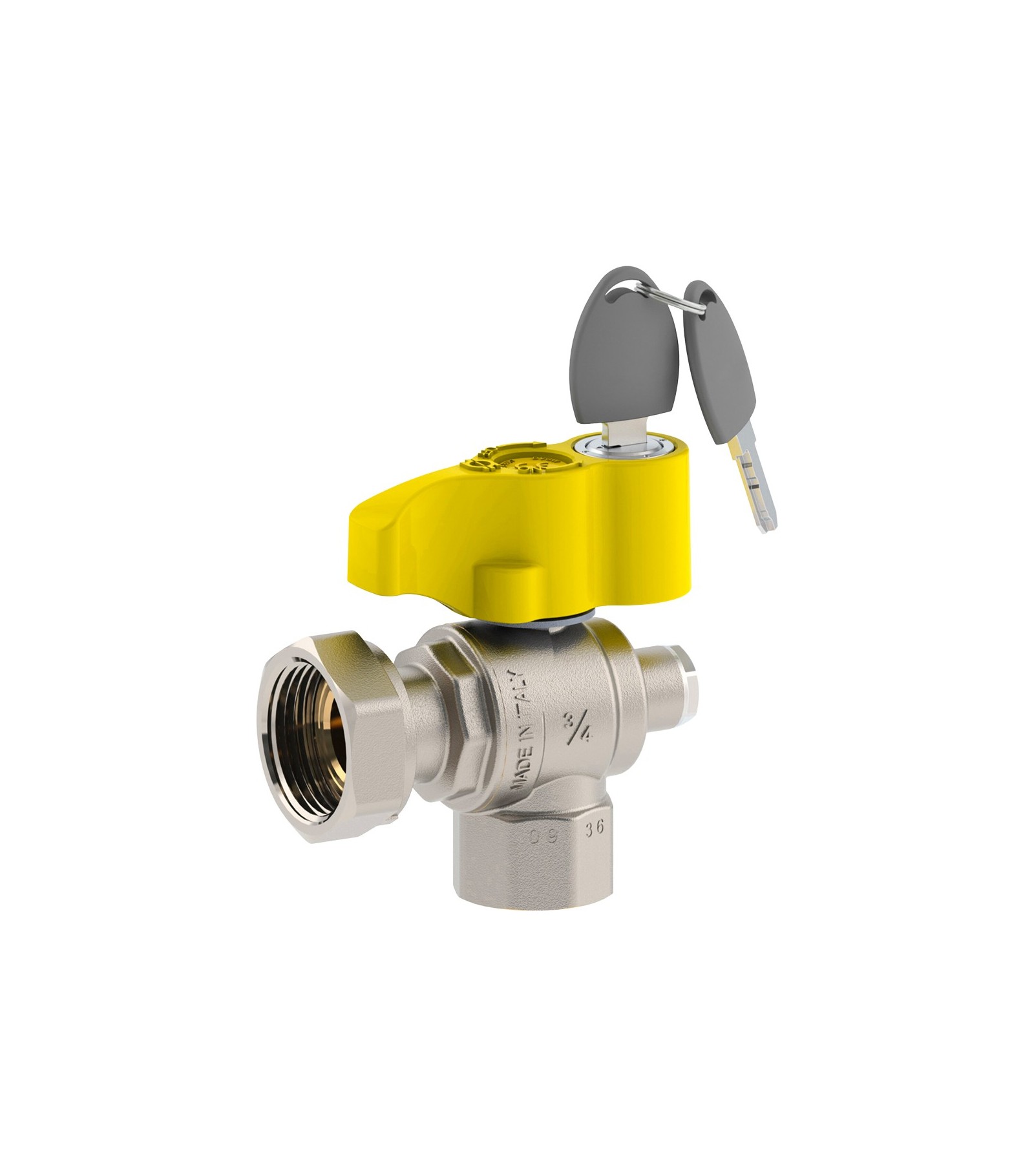 VALVOLA A SFERA GAS A SQUADRO POST-CONTATORE F/F CON DADO GIREVOLE E SICUREZZA FIV 1x11/4 - DN25
