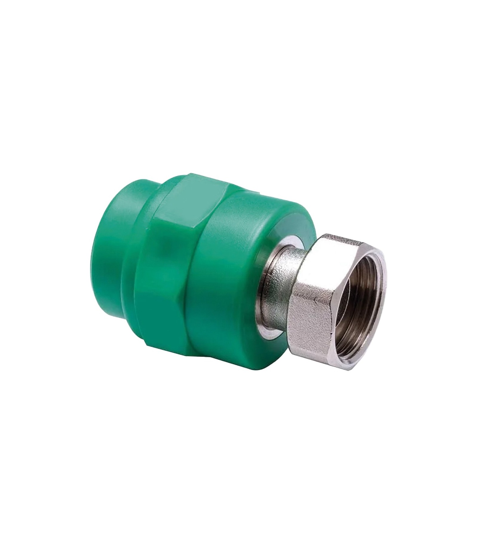 MANICOTTO DIRITTO FILETTATO FEMMINA CON CODOLO E DADO IN PPR VERDE PN25 D.25 x 3/4F G