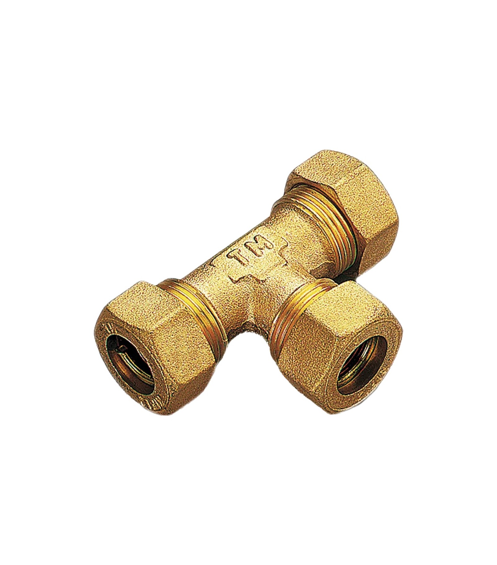 TEE CON 3 DADI A COMPRESSIONE CON O-RING PER TUBO RAME TIEMME D.14 x D.14 x D.14 mm