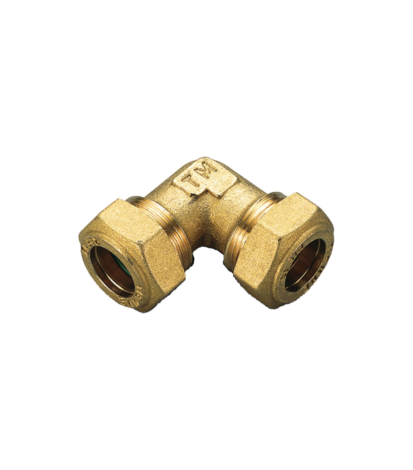 TIEMMERACCORDO CURVO DOPPIO A COMPRESSIONE CON O-RING GIALLO PER GAS TIEMME D.14 x D.14 mm
