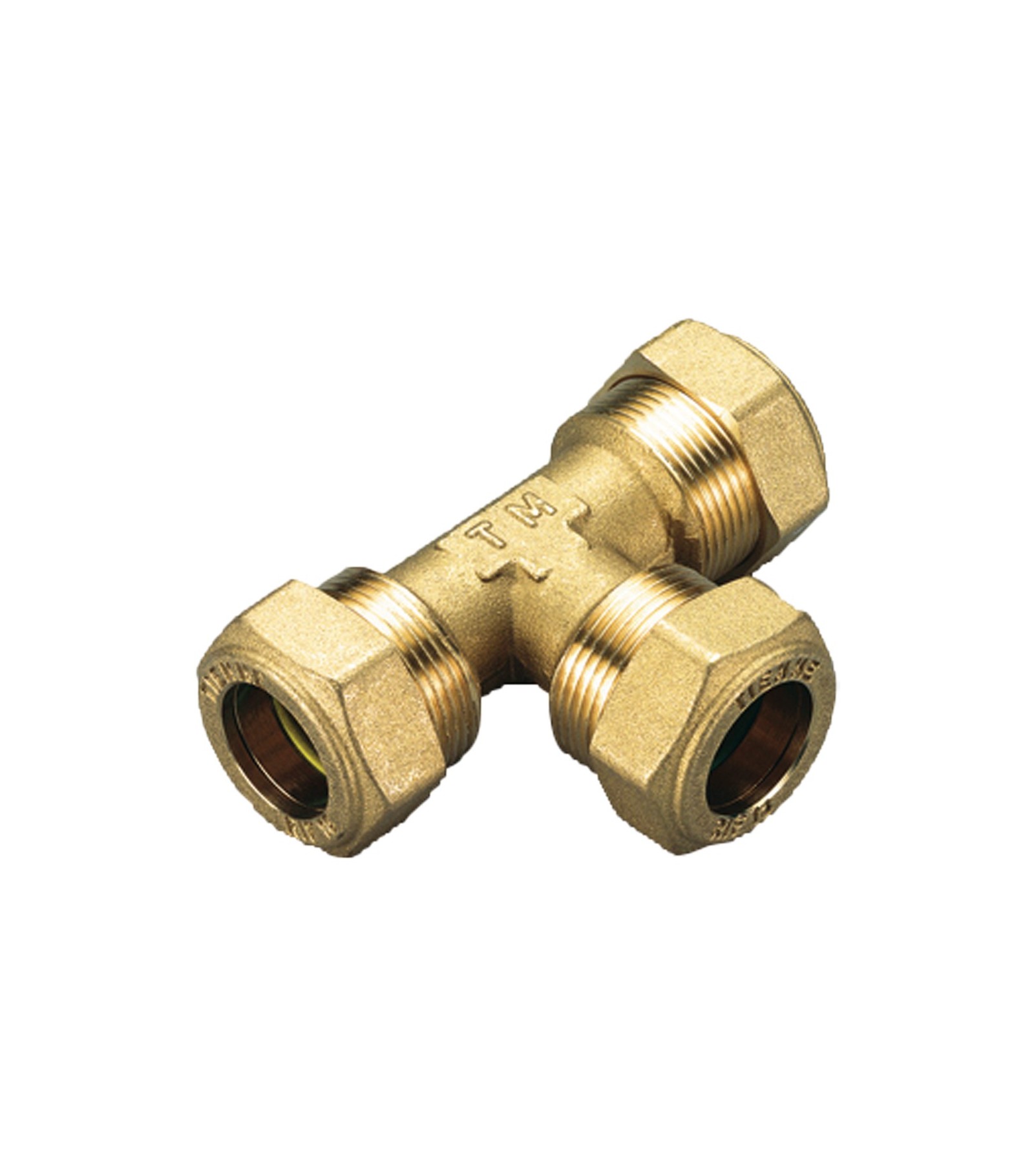 TEE CON 3 DADI A COMPRESSIONE CON O-RING GIALLO PER GAS TIEMME D.22 x D.22 x D.22 mm