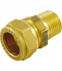 Raccordo a compressione per tubo rame con ogiva in ottone, realizzato in: corpo in ottone CW617N, dado in ottone CW617N, ogiva in ottone CW508L, filettature F ISO 7/1 (EN 10226) Rp cilindrico / M ISO 7/1 (EN 10226) R conico. Temperatura massima di esercizio: + 200 D.C. Temperatura minima di esercizio: - 20 D.C (purch‚ il fluido rimanga in fase liquida). Pressione massima di esercizio: 30 bar (10 bar con impiego di vapore). Compatibilità tubazioni: tubo rame, tubo rame ricotto (mediante impiego della bussola di rinforzo tubo art. 1116), tubo PE-X (mediante impiego della bussola di rinforzo tubo art. 1120). Compatibilità fluidi: acqua potabile, acqua e soluzioni glicolate (percentuale massima glicole 30%), gas, fluidi non corrosivi.