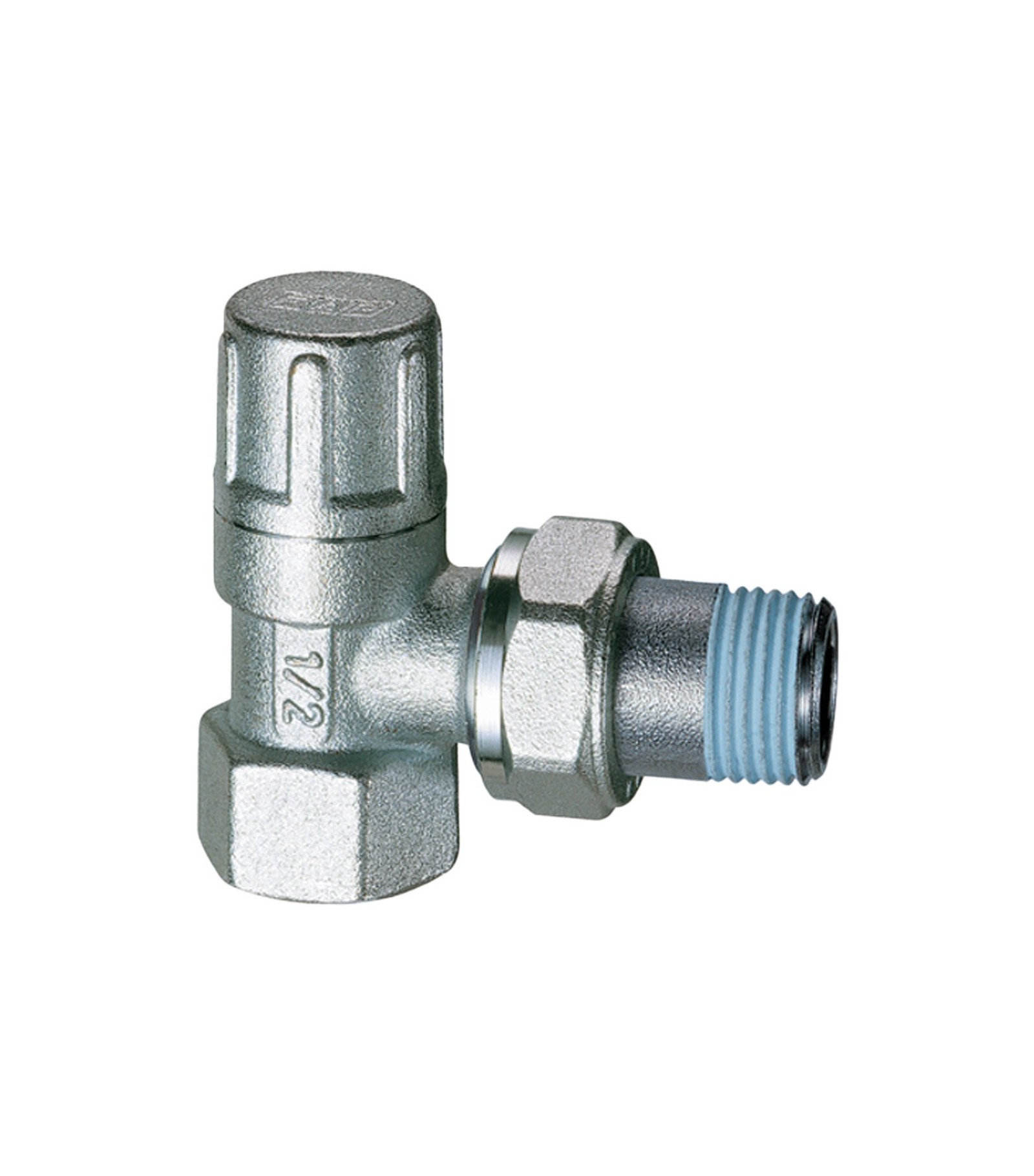 Detentore a squadra cromato. - attacco per tubo ferro. - cappuccio in ottone. - doppio o-ring di tenuta sull'asta. - otturatore a battuta metallica e tenuta con o-ring. - codolo preguarnito con Loctite© Dri-Seal© 5061. Temperatura max d'esercizio 95D.C. Pressione max d'esercizio 10 bar.