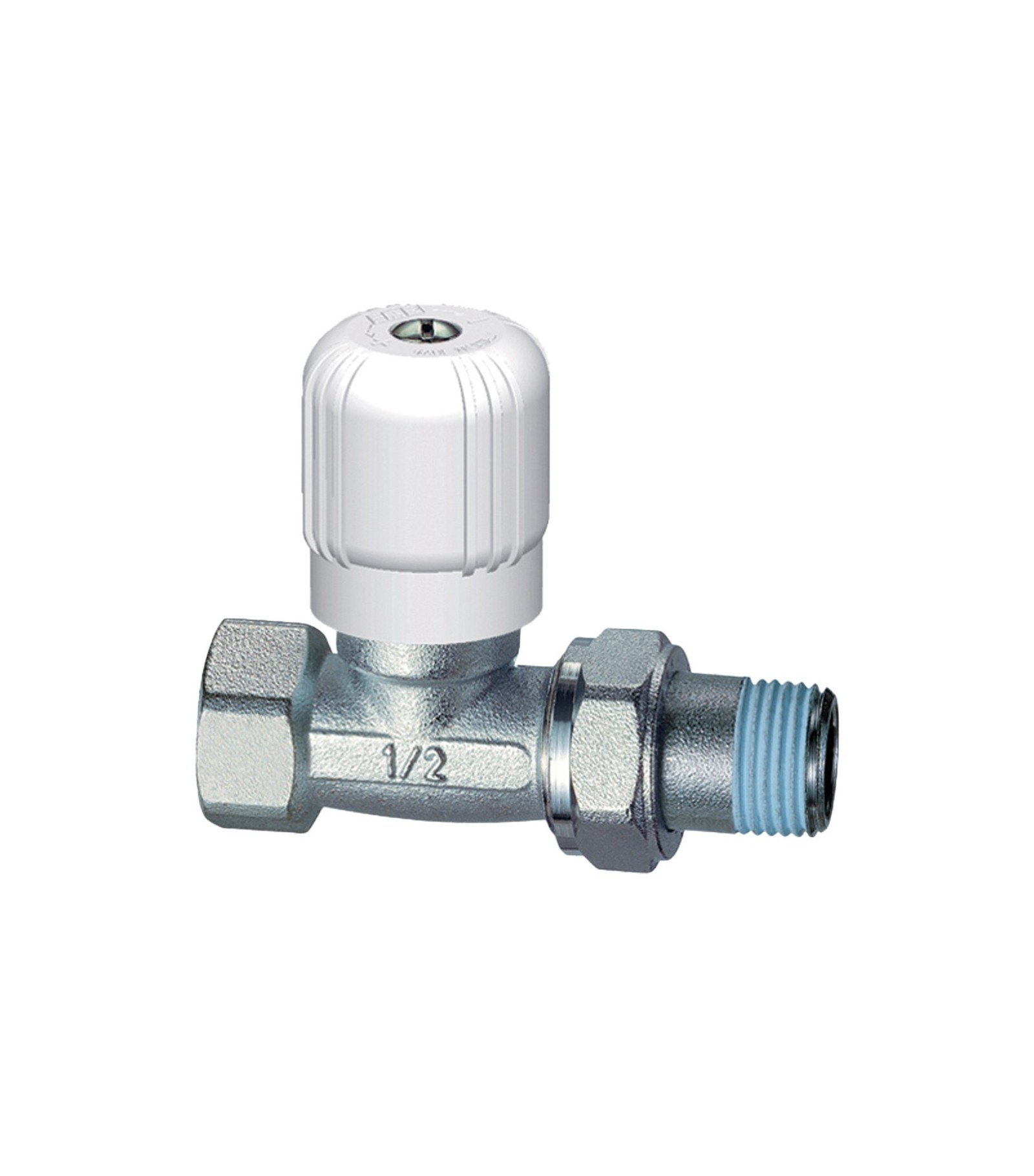 Valvola manuale diritta cromata. - attacco per tubo ferro. - volantino rinforzato in metallo. - asta con doppia tenuta, o-ring e premistoppa. - otturatore a battuta metallica e tenuta con o-ring. - codolo preguarnito con Loctite© Dri-Seal© 5061. Temperatura max di esercizio 95D.C. Pressione max di esercizio 10 bar.