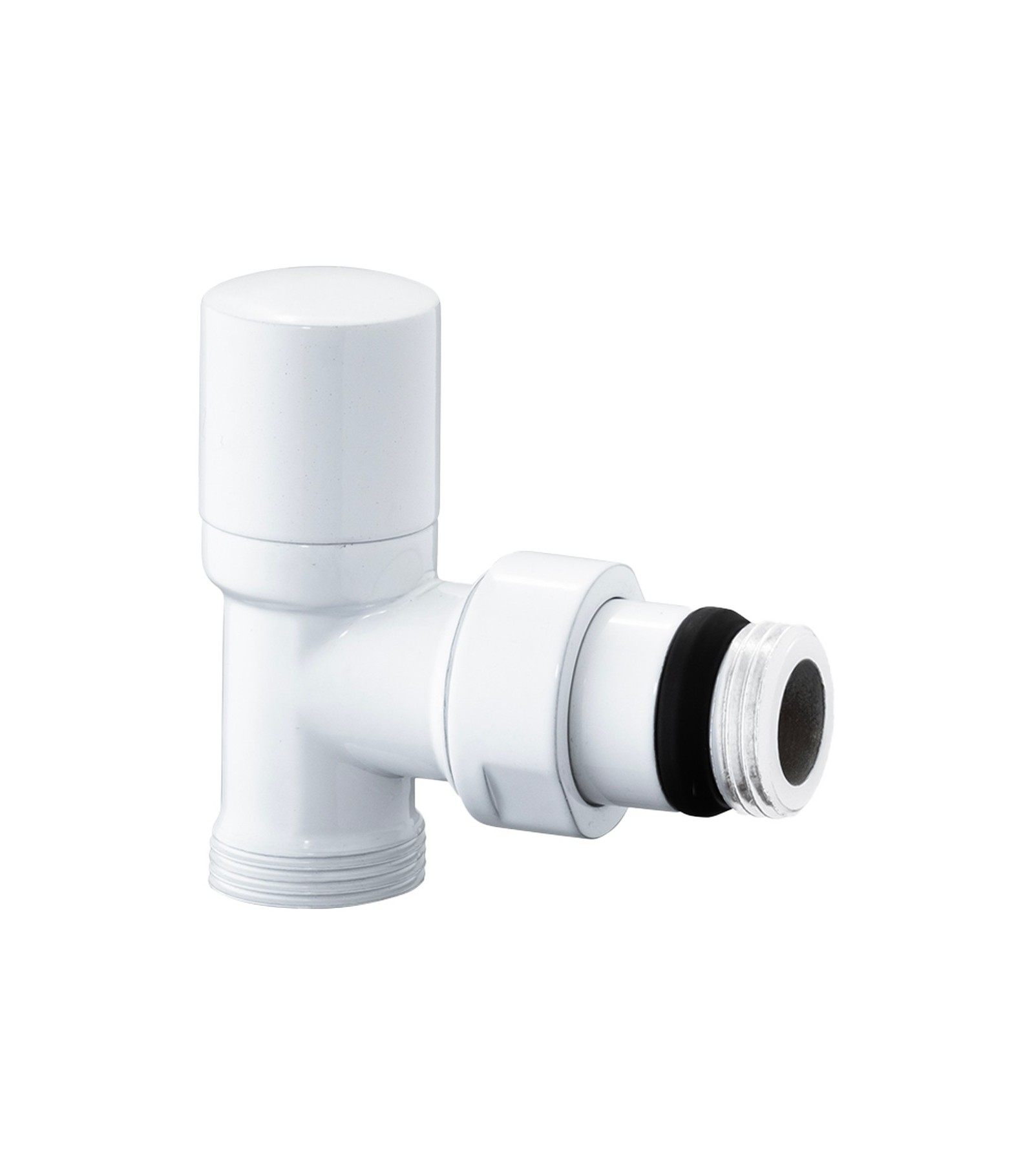 Da abbinare con valvola ns codice 08016. Adattatori ns codice 08020 e 08022. Detentore micrometrico a squadra per il collegamento di tubo rame, multistrato e pex. Corredato di bocchettone antisgocciolamento. Finitura bianca.