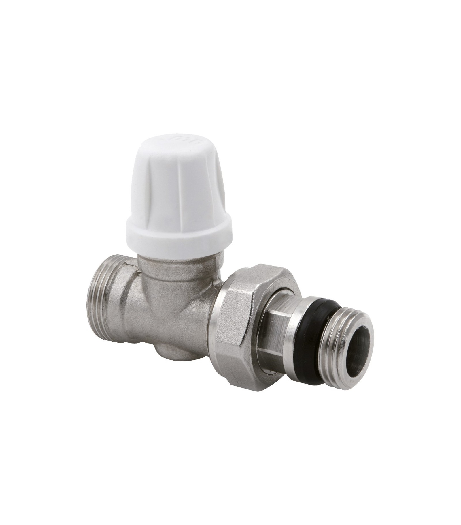 Detentore diritto micrometrico, per tubo di rame, Multistrato, Pe-X. Doppia tenuta sulla sede, o-ring pi— tenuta metallica. Corredato di bocchettone antisgocciolamento. Fluidi impiegabili: Acqua e soluzione glicolicate. Max percentuale di glicole: 30%. Pressione max di esercizio: 10 bar. Pressione massima differenziale: 1 bar. Temperatura fluido termovettore 5D.C / 120D.C.