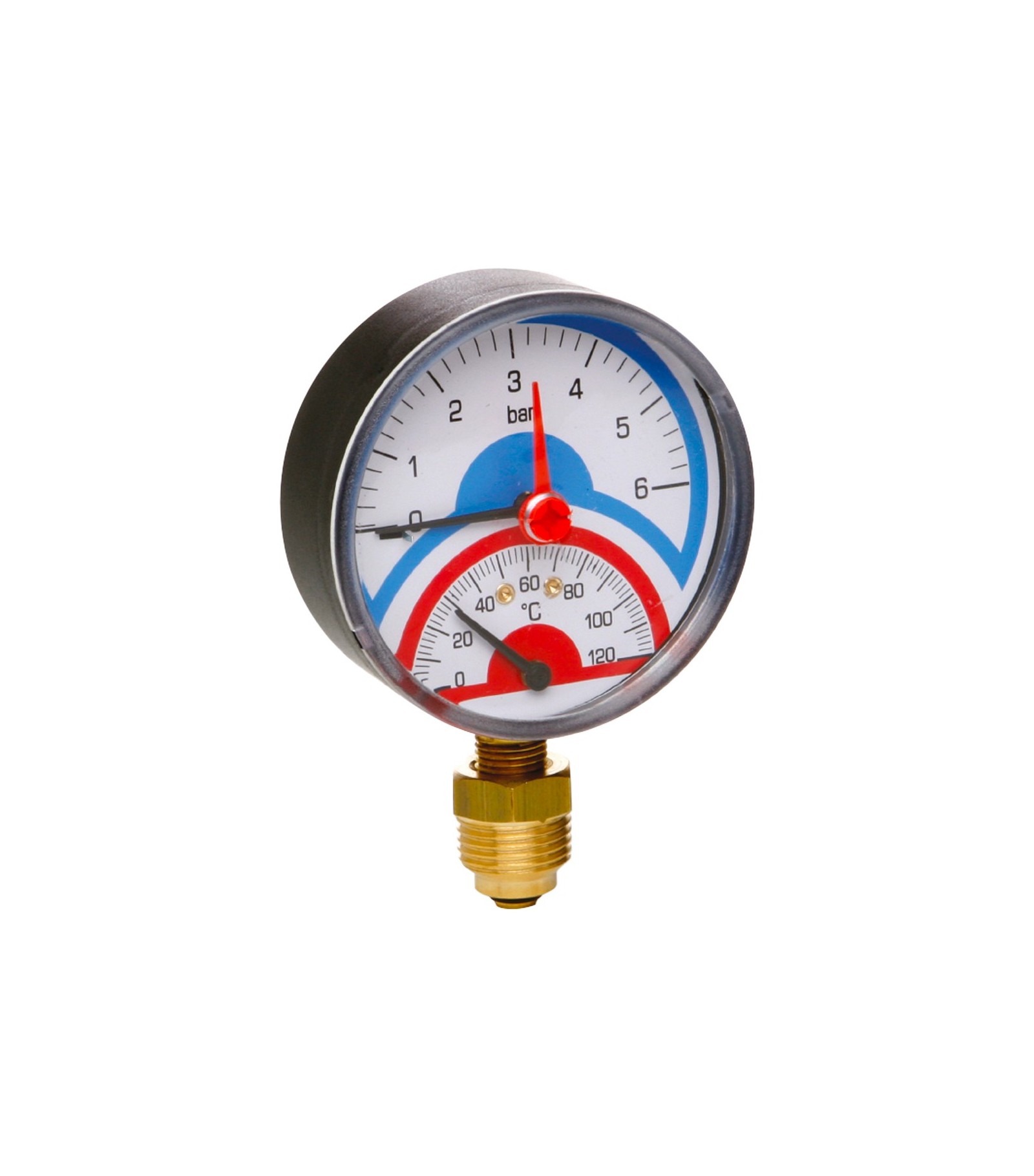 ICMATERMOMANOMETRO RADIALE ATTACCO LATERALE D. 80 1/2 0÷4 Atm 0÷120°C