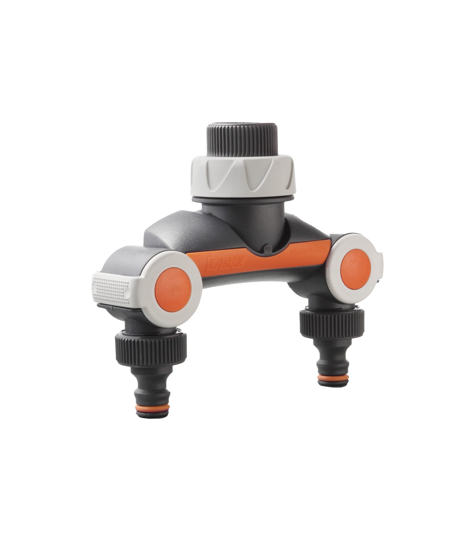 Presa rubinetti doppia uscita con regolazione del flusso differenziato.