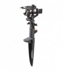 Irroratore pulsante a settore, ideale per le grandi superfici, versione su puntale. Dispositivo rompigetto per la distribuzione uniforme dell'acqua. Angolo di irrigazione da 15D. a 360D.. Base in PP di notevole stabilità. Portata massima 15 l/min. Copertura 450 mq, raggio di azione 12 mt.