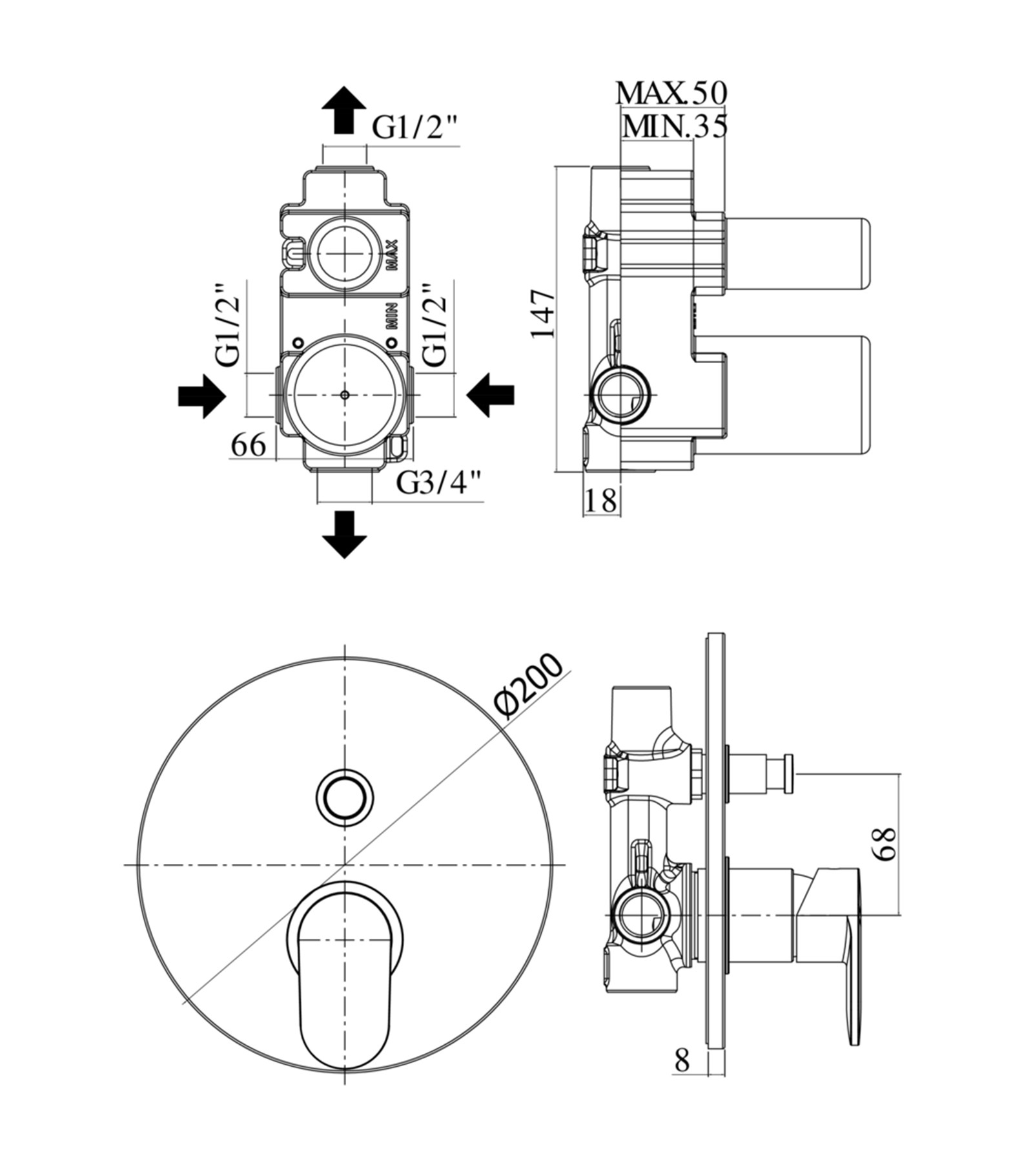 RUBINETTERIA PAFFONI S.p.A.Paffoni Candy CA015 Miscelatore per Doccia con Deviatore da Incasso Cromo