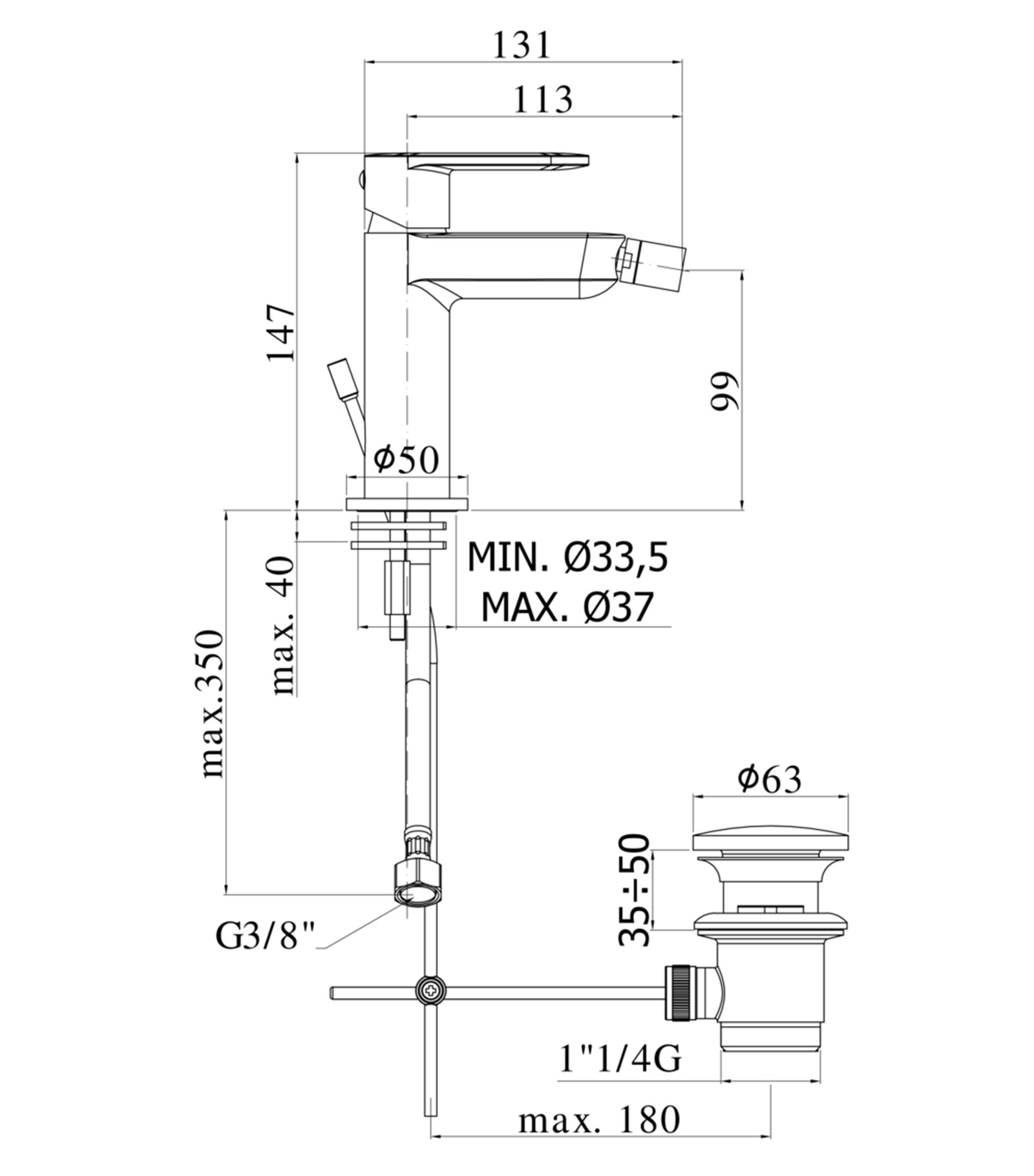 Miscelatore bidet completo di: