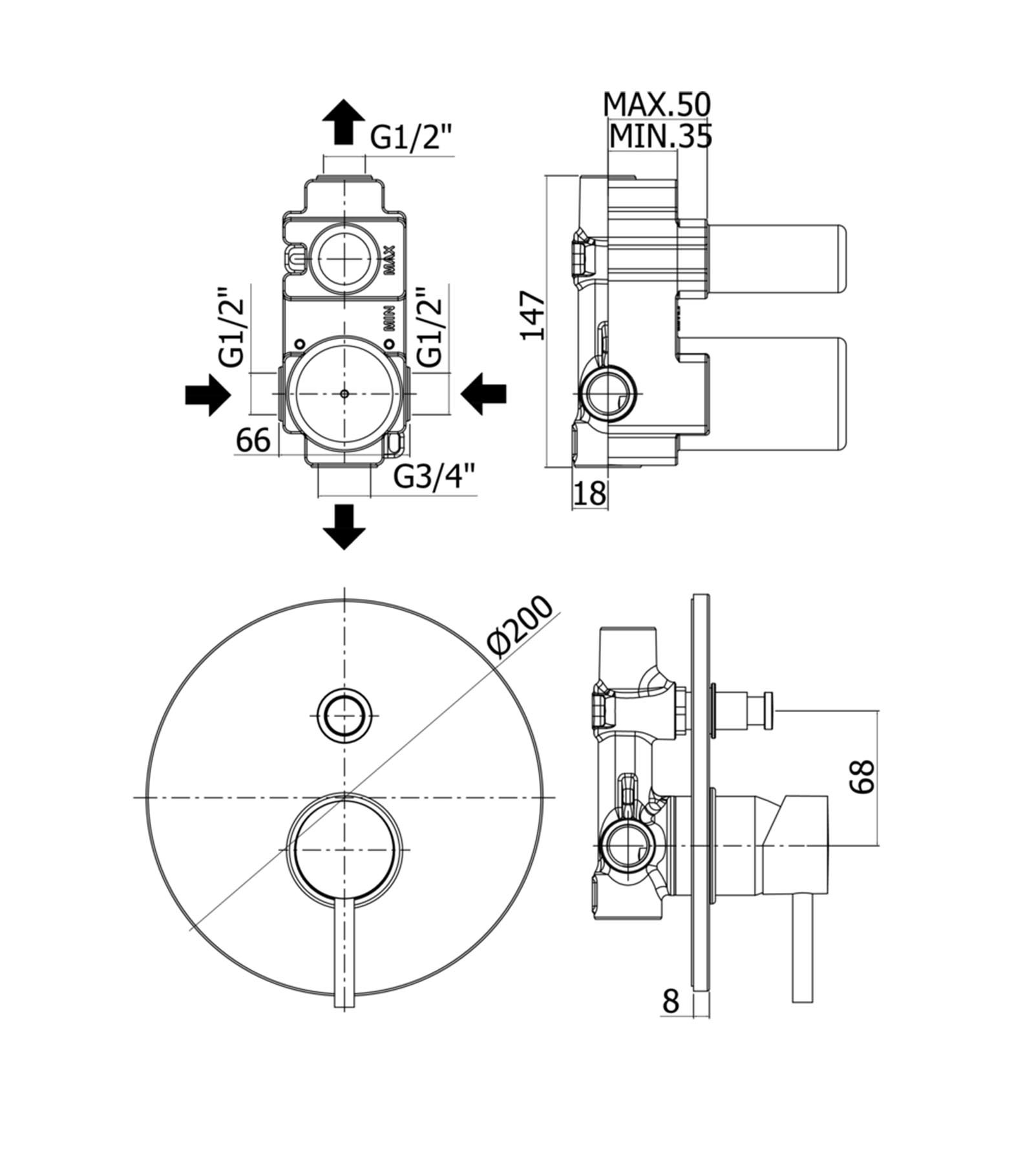 Miscelatore incasso doccia (2 uscite) completo di: