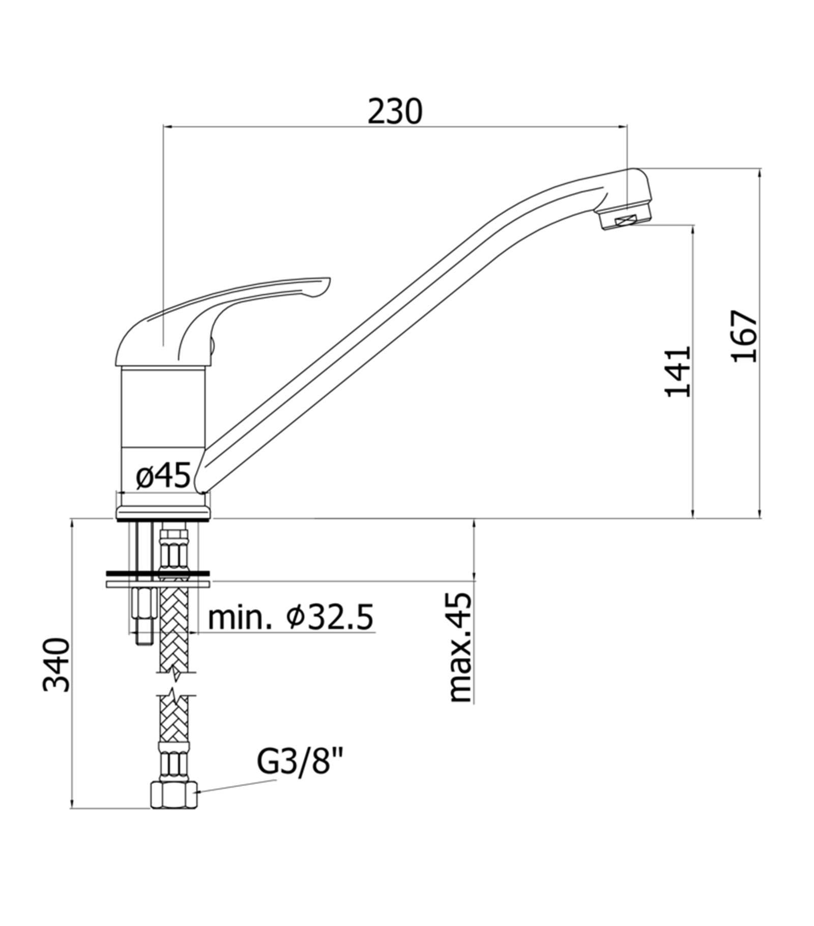 Miscelatore lavello monoforo con canna orientabile completo di: