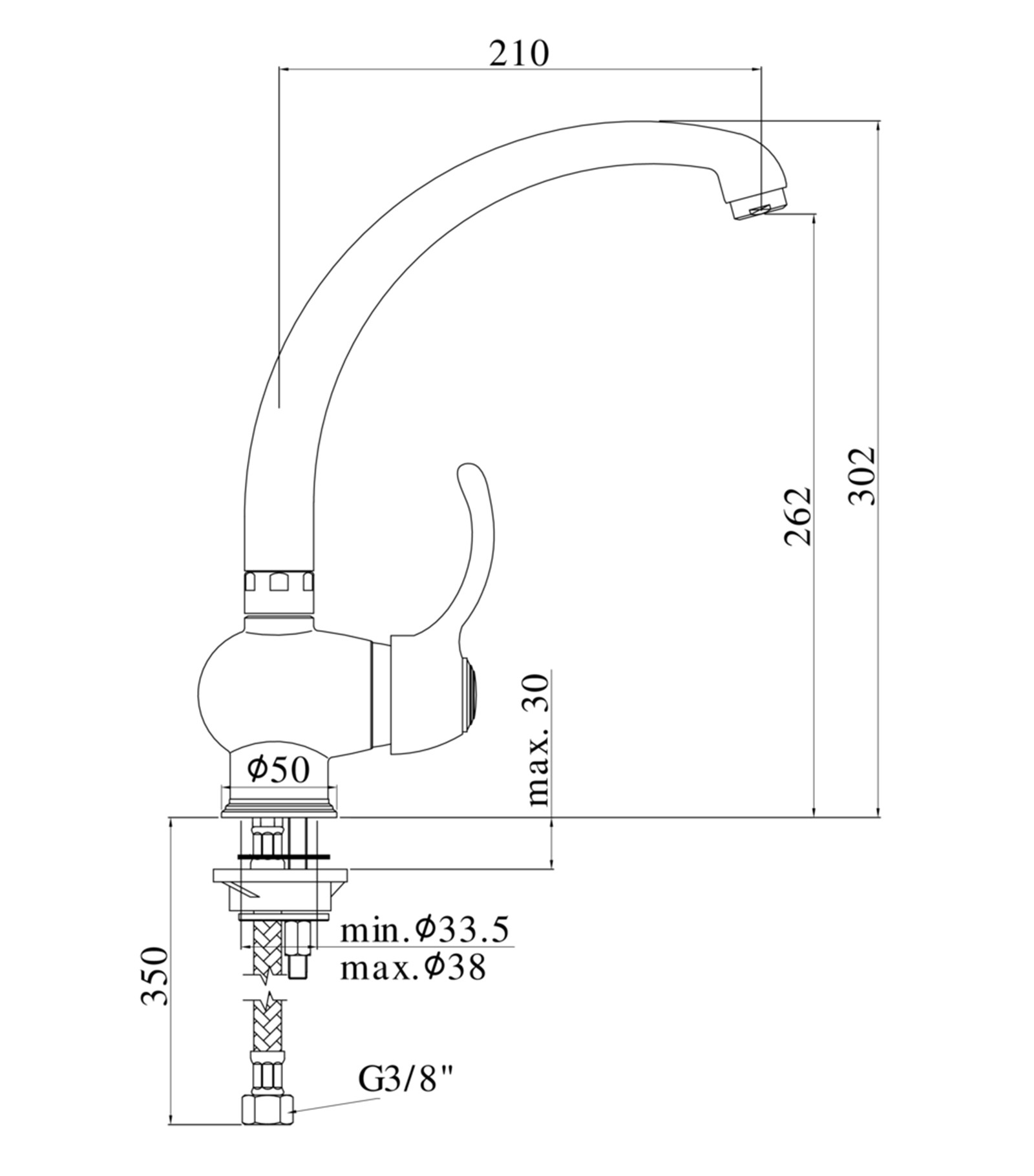 Miscelatore lavello monoforo con canna orientabile completo di: