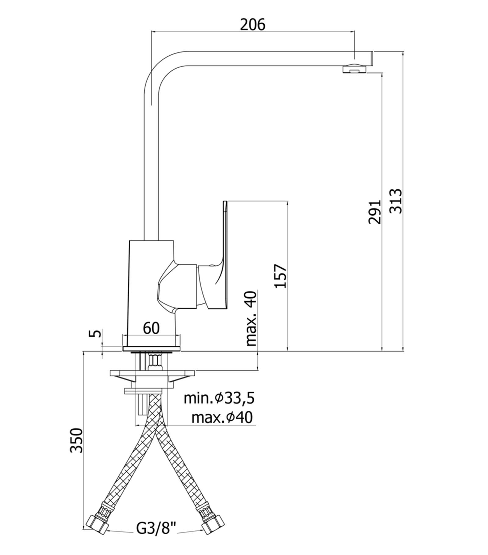 RUBINETTERIA PAFFONI S.p.A.Paffoni Sly SY180 Miscelatore Monoforo Tubo Piatto per Lavello Cromo