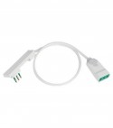 Con cavo 3G1 H05VV-F da Mt. 1, spina a squadra italiana 2P+T 16A e presa bipasso italiana 2P+T 16A.