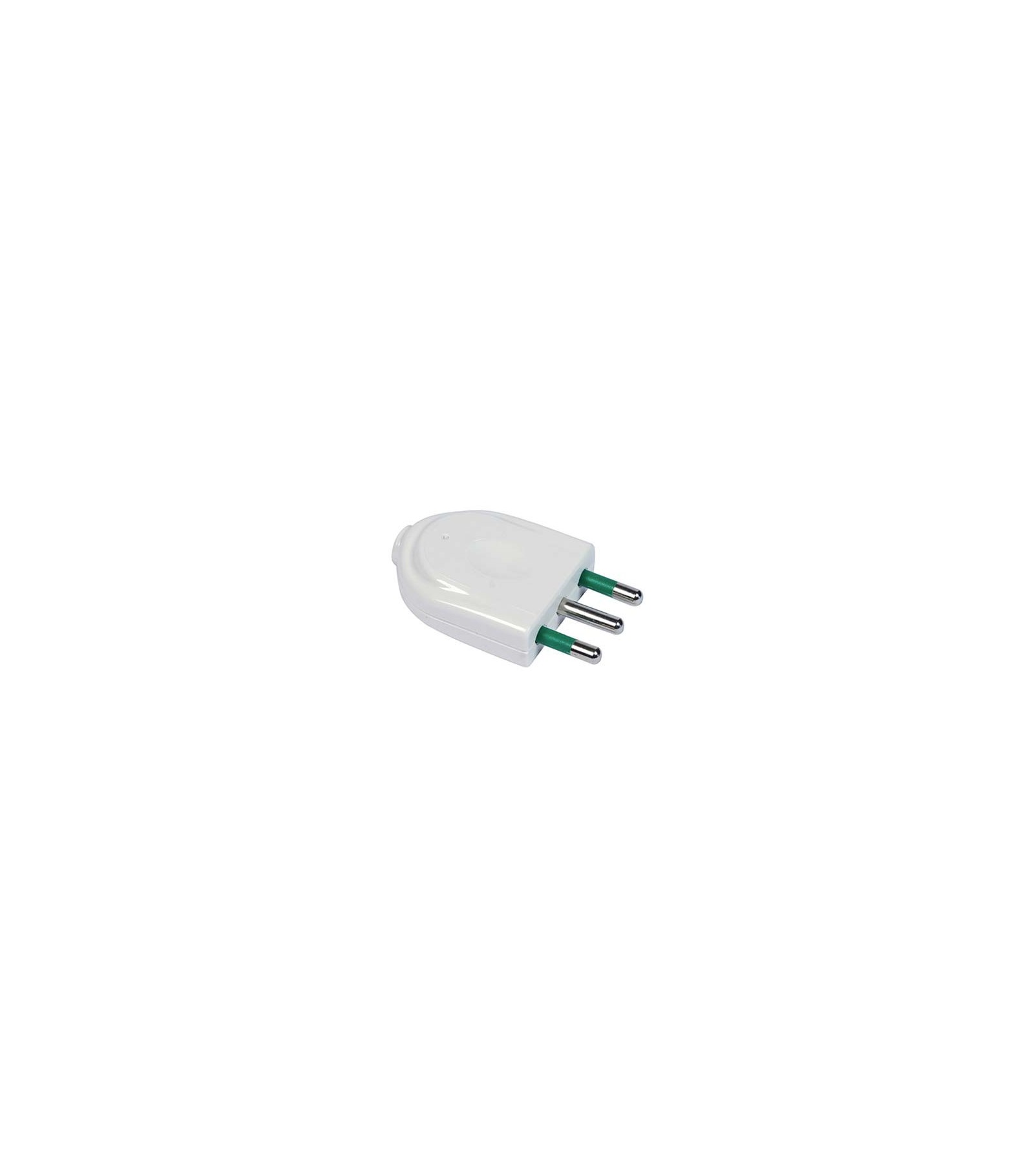2P+T. Corpo in tecnopolimero ad alta resistenza, unito con vite imperdibile. Con spinotti allineati a pettine in ottone nichelato, annegati e protetti.