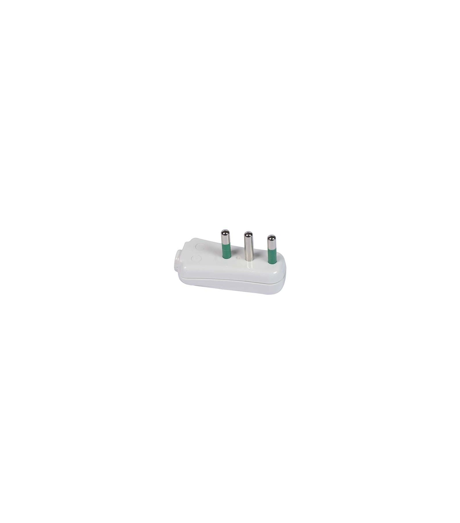 A squadra ribassata 2P+T. Corpo in tecnopolimero ad alta resistenza, unito con vite imperdibile. Con spinotti allineati a pettine in ottone nichelato, annegati e protetti. Colore bianco.