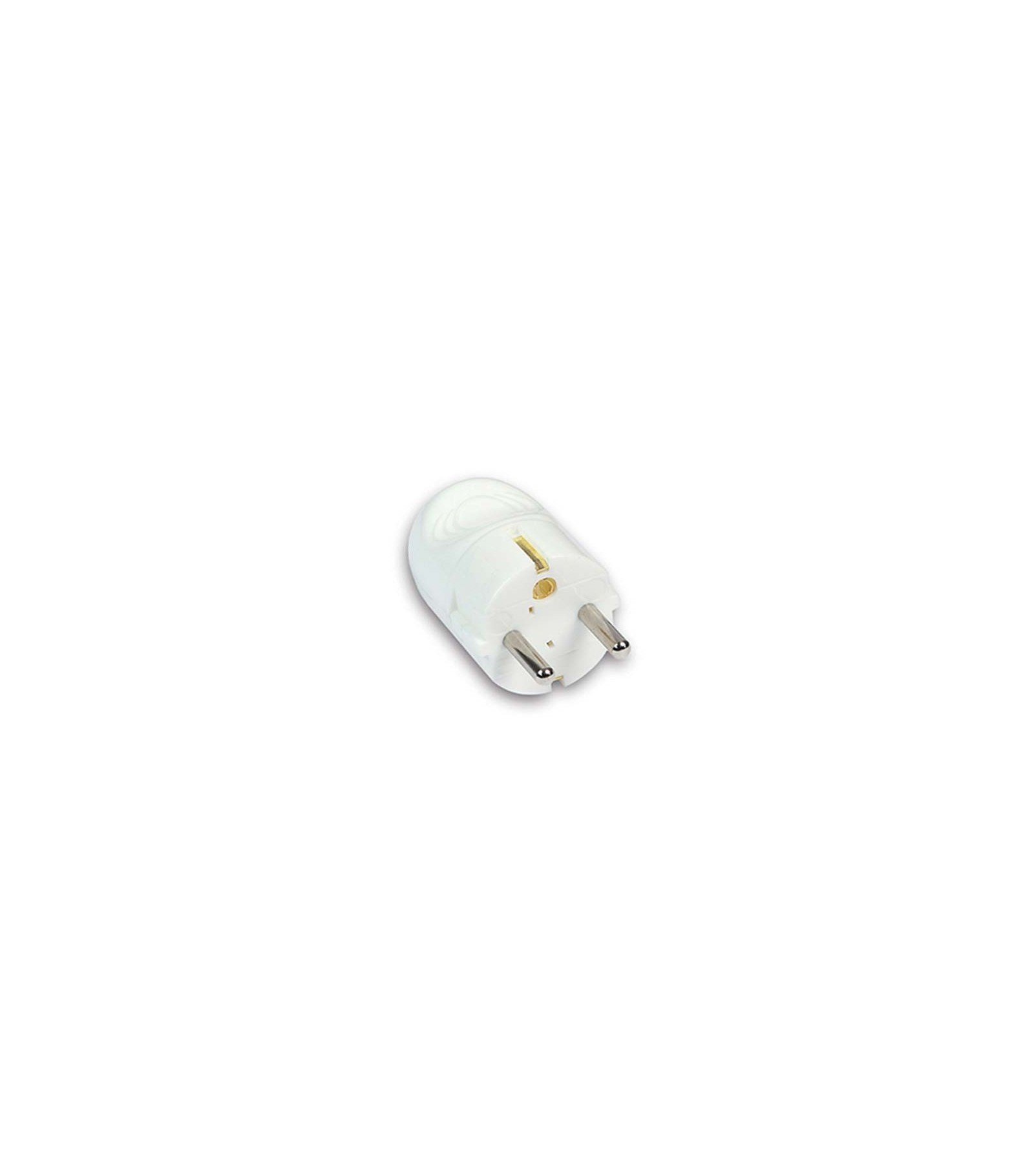 2P+T. Corpo in tecnopolimero ad alta resistenza, unito con vite imperdibile. Con spinotti allineati a pettine in ottone nichelato. Colore bianco.