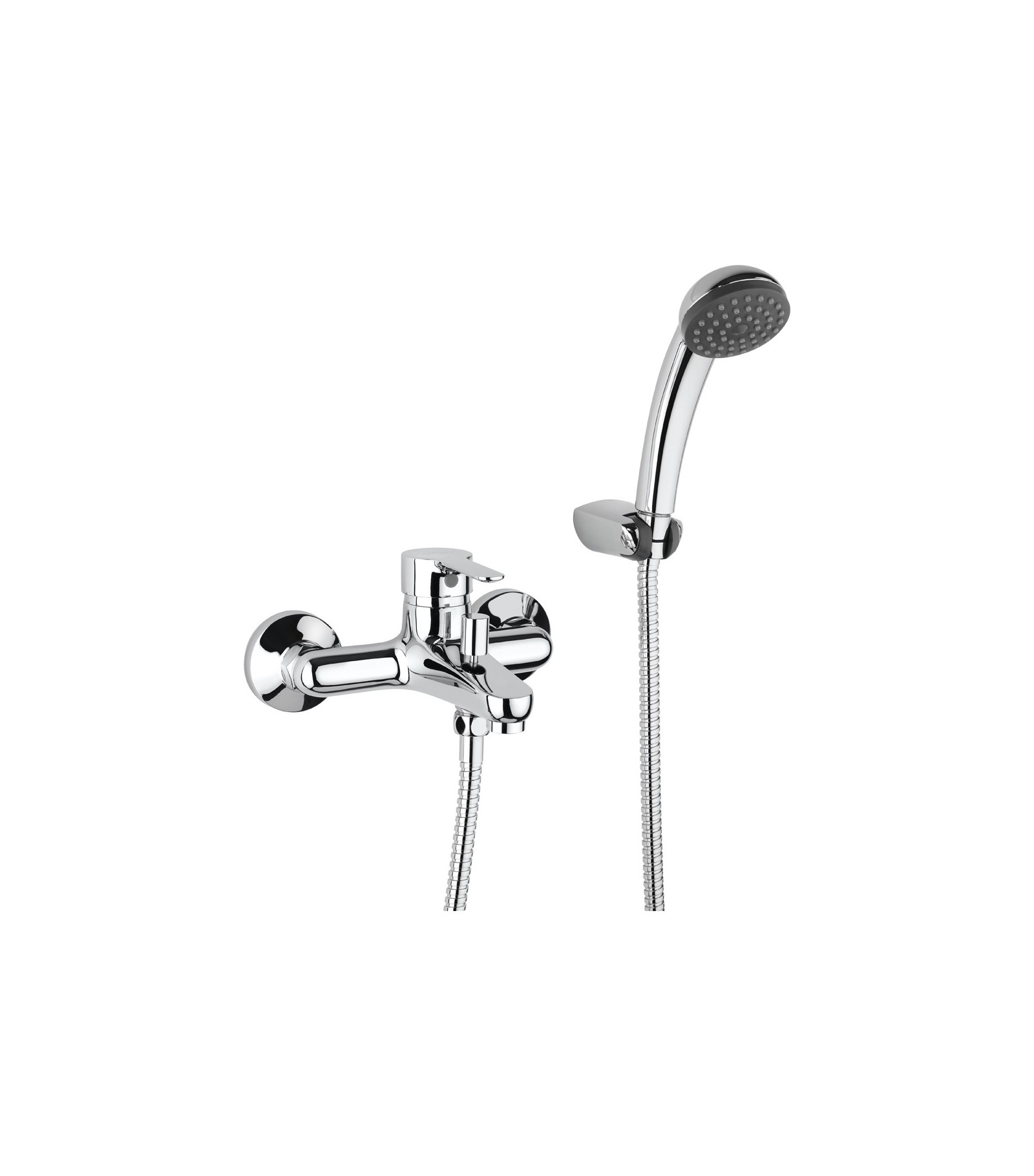 Miscelatore Vasca per installazioen esterna alla parete. Fornito completo di Set Doccia: - Supporto Doccia a muro, - Doccetta, - Flessibile Doccia 150 cm.