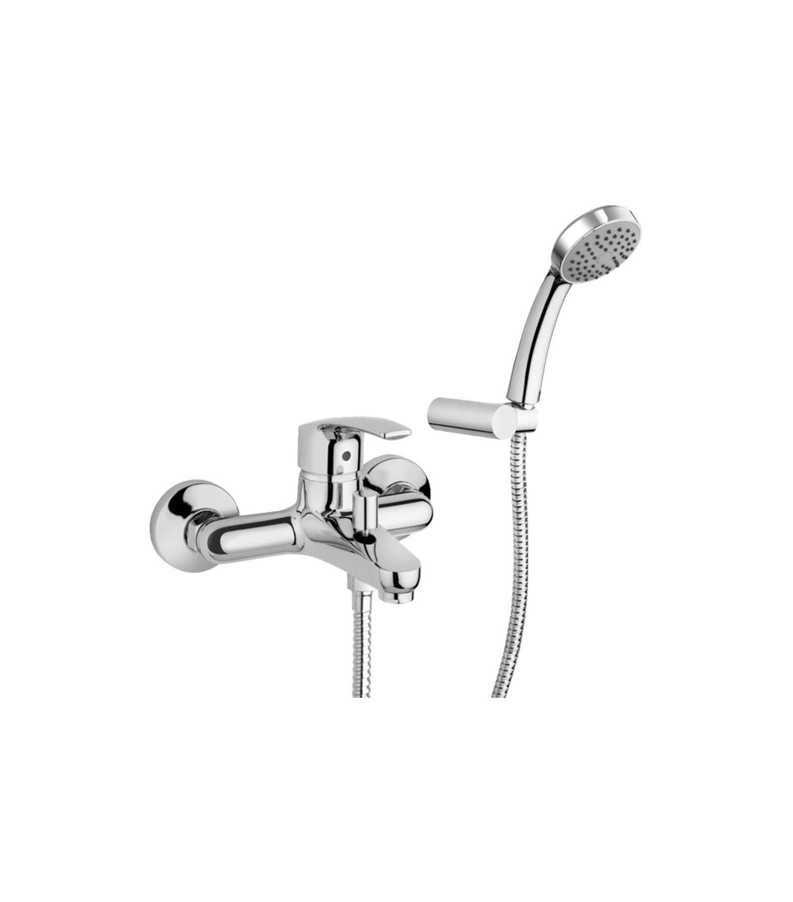 Miscelatore Vasca per installazione esterna alla parete. Fornito completo di Set Doccia: - Supporto a Muro per doccetta, - Doccetta, - Flessibile Doccia 150 cm. Cartuccia 40mm, Bassa. Modello BE01