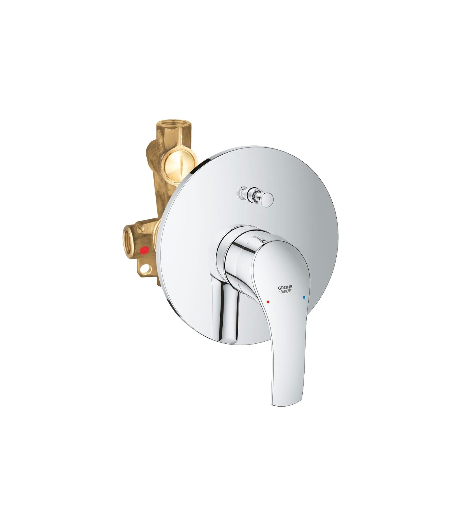 Installazione incasso a parete. Cartuccia a dischi ceramici da 46 mm con tecnologia GROHE SilkMove. Sistema di installazione GROHE FastFixation. Parte esterna + Corpo incasso. Dotato di serie di limitatore di portata regolabile. Deviatore automatico. Rosone metallico.