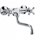 Gruppo lavello a muro, con canna a S 18x180 mm, completo di: - Aereatore M22x1, - Set 2 eccentrici 1/2x3/4 G e rosoni. Vitoni in ceramica di ricambio nostro articolo 04186.
