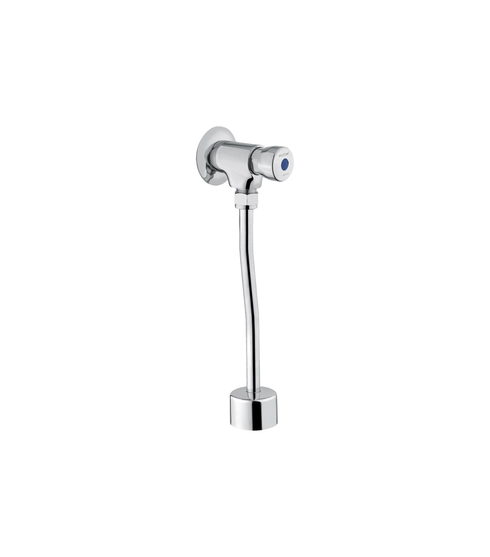 Corpo in Ottone Cromato. Comando a Pulsante. Arresto temporizzato 6 secondi, a 3 bar non modificabile. Completo di tubo d.14 e rosone a campana cromato. Vitone di ricambio 0441406