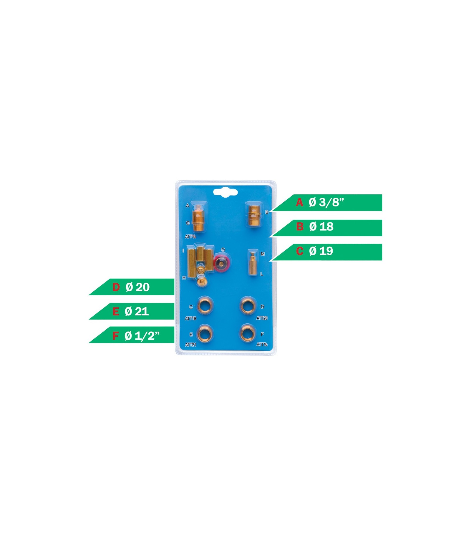 Per rubinetteria a vitone. 12 Possibili combinazioni. Fornito in Blister.
