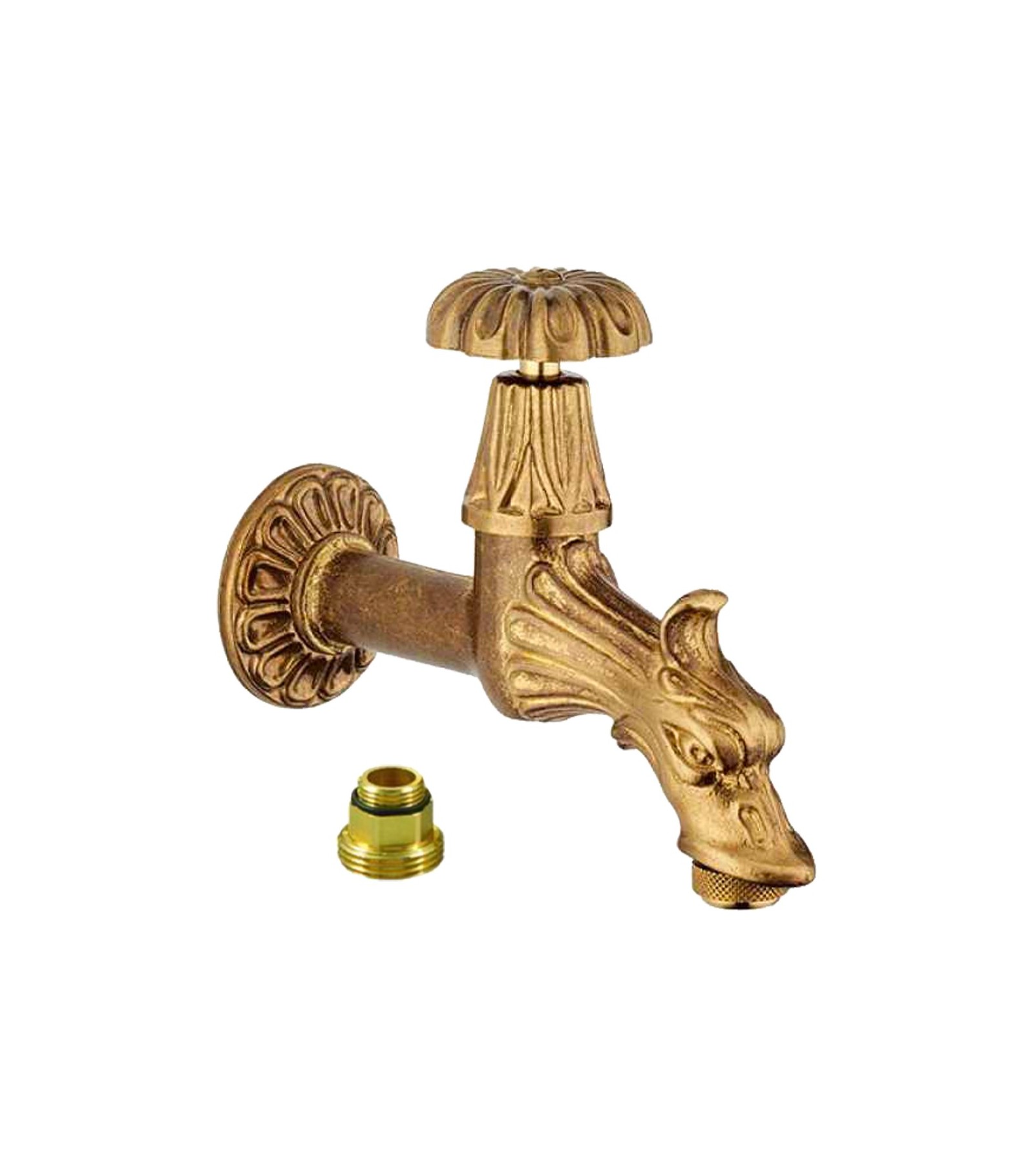 RUBINETTO ARTISTICO PER FONTANA A VITONE CON ATTACCO PORTAGOMMA 1/2 + Rosone