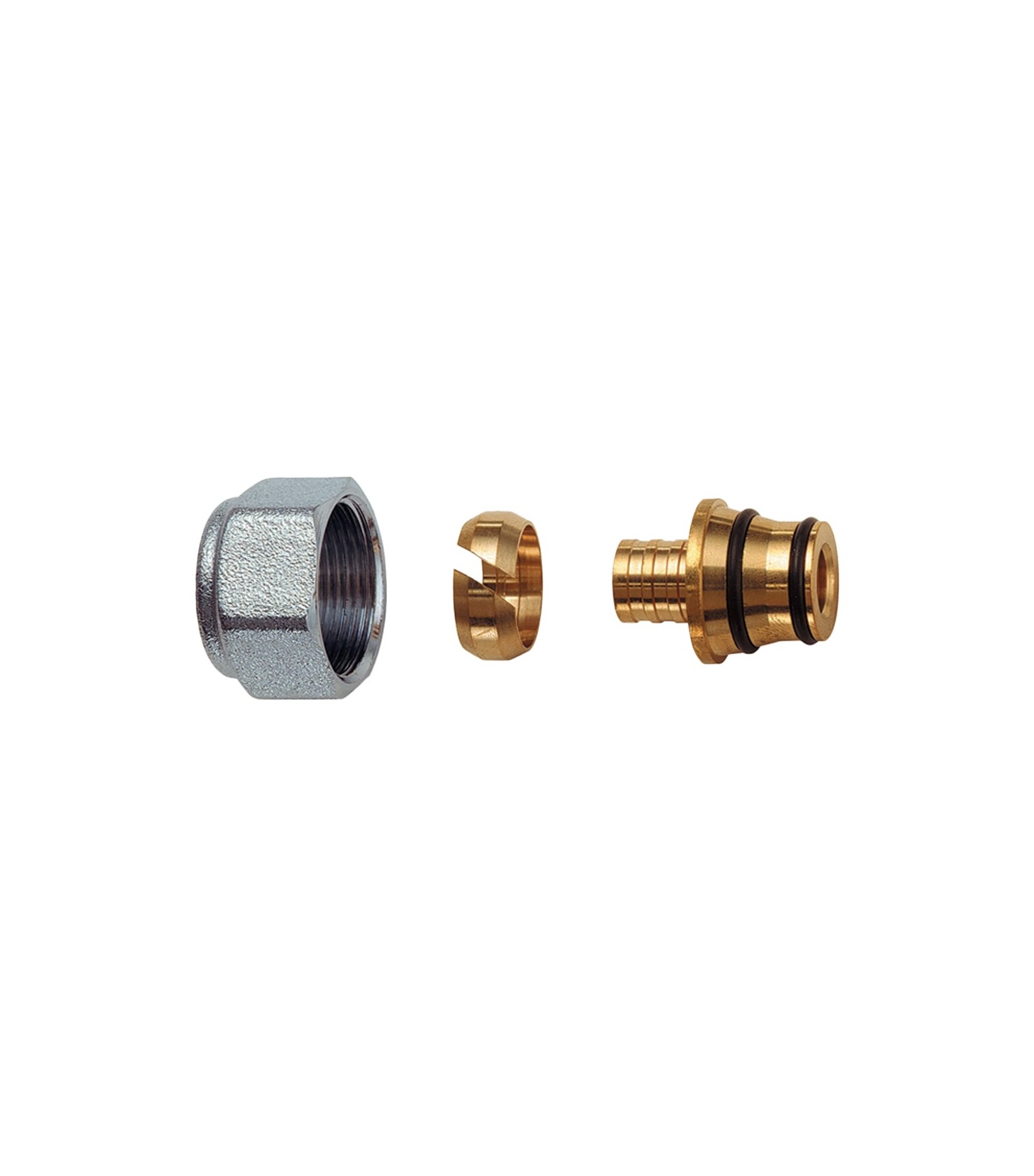 Kit per tubi di materiale plastico adattabile a tutti i nostri articoli con attacco intercambiabile 24x19. Completo di : - Adattatore per tubo plastica. - Anello stringitubo in ottone. - Calotta cromata filetto 24x19.