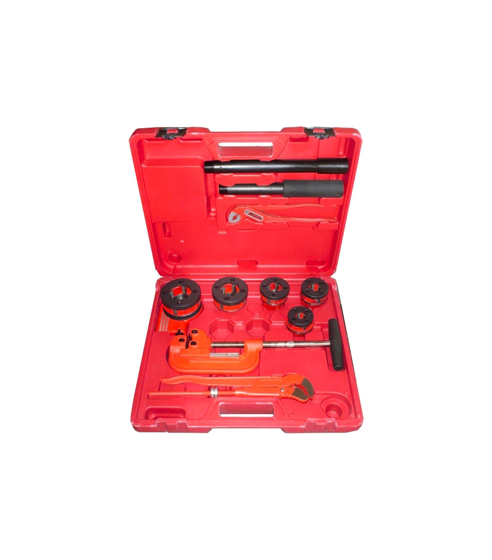 Kit filiera a mano modello economico in cassetta di plastica, con cricco e bussole da 3/8 - 1/2 -3/4 - 1 - 1 1/4.